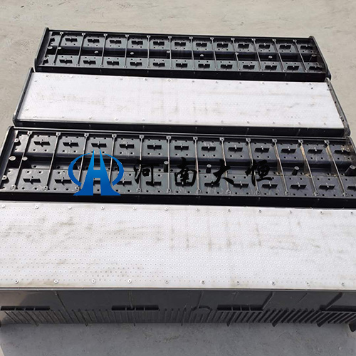濾池運行一段時間后,隨著濾料層截污量的增加,對水流的阻力增大,致使濾速下降,濾后水濁度升高。為使濾池在短時間內恢復正常運行,保證出水水質和水量,此時必須進行反沖洗。由于傳統濾池工藝陳舊,耗能耗水量大、反沖成本高、效果差,因而當今濾池設計已普通采用具有超強布水布氣功能的塑料濾磚作為反沖洗工藝。塑料濾磚由給水室和分散室組成,反沖洗時可均勻分布空氣和水,減少無效區,長度為1.2米,相比其他公司產品長度為0.9米,長出約30%以上,減少連接部分,具有超強均等分配水和空氣的功能。交叉徑向結構的上端孔板,徑向槽部和交叉行孔組成,堵塞現象少,反沖時可均勻等輻射水和空氣。