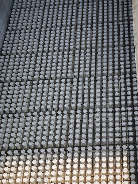 河南大恒環(huán)保科技有限公司根據(jù)市場(chǎng)的需求,研制開(kāi)發(fā)了多種規(guī)格、不同孔數(shù)的用于整體澆筑濾板的ABS模板,該模板長(zhǎng)964mm,寬965mm,濾頭數(shù)36-49個(gè),長(zhǎng)度1138x920x80x5mm,塑料整體濾板強(qiáng)度高,質(zhì)量好,便于機(jī)械化施工,施工周期短。可調(diào)試濾頭可進(jìn)行調(diào)節(jié),方便調(diào)節(jié)濾頭的水平度。