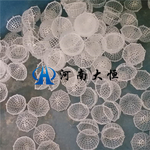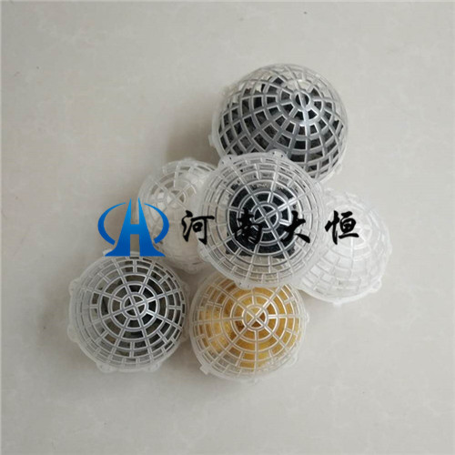 懸浮球填料中有聚乙稀或聚丙烯材料注塑而成,分內(nèi)外雙層球體,外部為中空魚網(wǎng)狀球體,內(nèi)部為轉(zhuǎn)型球體,在使用過程中,微生物易生成,易更換,耐酸堿,抗老化,不受水流影響,使用壽命長,剩余污泥極少,安裝方便。